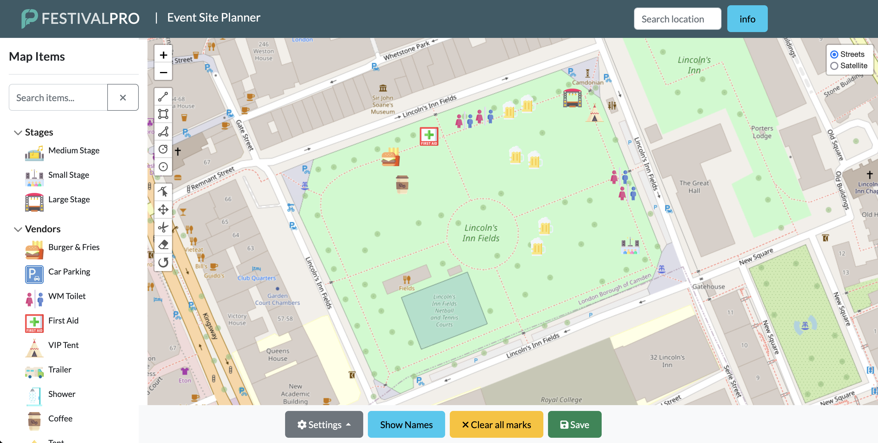 A site planning software platform that can integrate with other logistics planning will make the organisers job easier. A comprehensive site planning tool can help collaboration between different festival organiser departments as well as sharing pertinent data with extremal contacts which may include vendors and other suppliers.